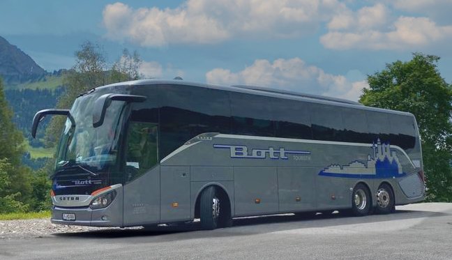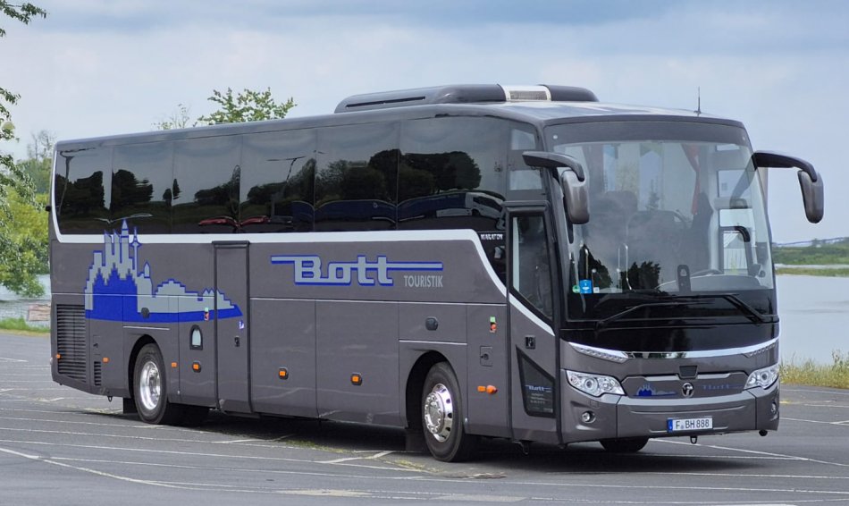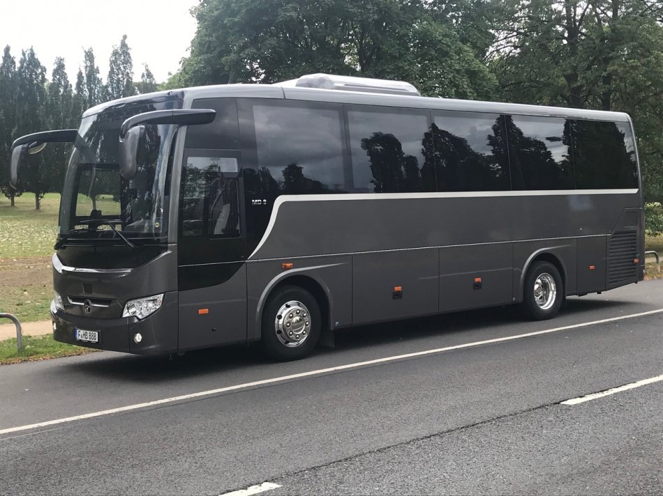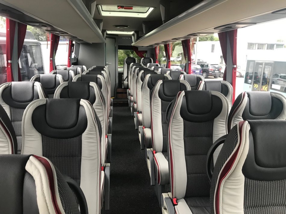 Reisebus mit 32+1 Sitzplätzen, WC, Video, Bordküche, Kühlschrank, Sicherheitsgurte, Fußstützen, Klapptische, USB-Lademöglichkeit, modernste Sicherheitstechnik mit Bremassistent, Euro VI-Norm